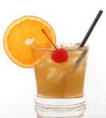 Pour ingredients into glass filled with ice and stir. Strain into a cocktail glass and add cherries.